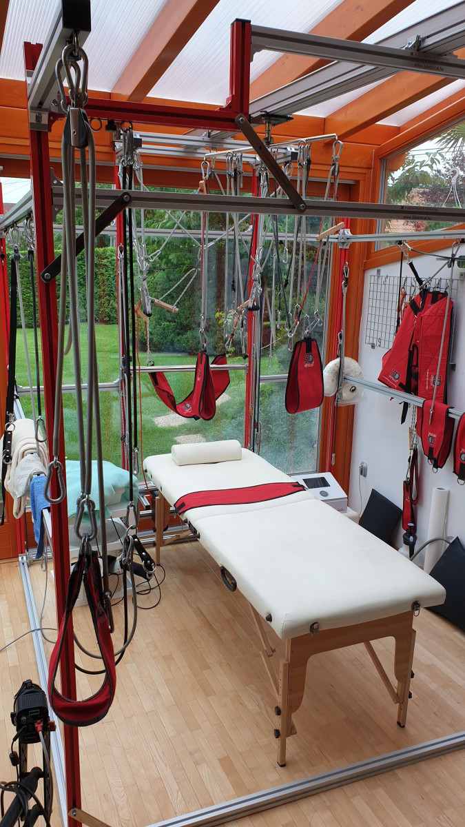 A három dimenzióban szabályozható gyakorlótér hatékonyan alkalmazható a prevencióban, a mozgásterápiában és a sportrehabilitációban egyaránt. Az elasztikus ellenállások segítségével egyszerre biztosít izomerősítést és tehermentesítést, így gyorsabb és biztonságosabb felépülést tesz lehetővé. Mozgó szerkezete elősegíti az izmok erősítését, az ízületek kimozgatását és a sérülések hatékony kezelését – akár néhány nap alatt is. Kifejezetten ajánlott nyak-, gerinc-, váll-, csípő-, térd-, boka- és egyéb mozgásszervi problémák esetén is.
