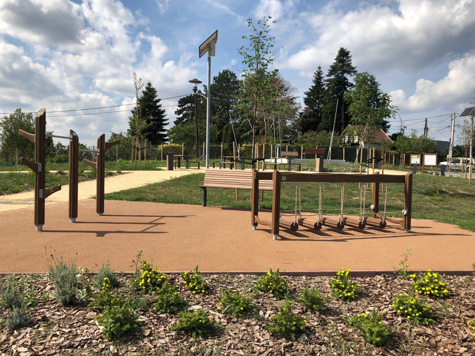 A település egyik legszebb pontján, a Koronázódombon 8500 négyzetméteren alakítottak ki új közparkot, kilátóponttal és a legkisebbeket megszólító ügyességi játszótérrel. Az ötállomásos tornapálya főként a 3–7 éves gyerekeknek nyújthat önfeledt kikapcsolódást. A modern mászóka, libikóka, hinta, minicsúszda és egyensúlyozó játékok mostantól még biztonságosabbak az ütéscsillapító gumi burkolatnak köszönhetően. A kényelmet padok, a megközelítést pedig új parkolóhelyek és biciklitárolók segítik. A frissen ültetett fák és cserjék a környék természetközeli jellegét erősítik.