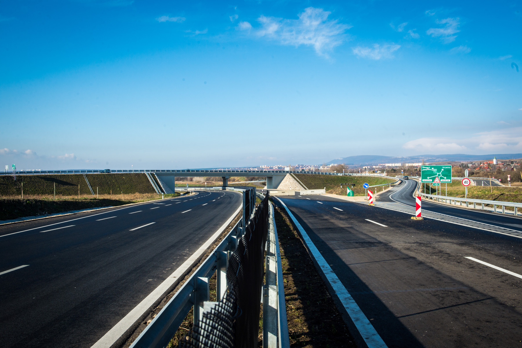 A kétszer két sávos, 110 km/órás tervezési sebességű, fizikai elválasztó sávval és különszintű csomópontokkal kiépített út nemcsak kényelmesebbé, de jóval biztonságosabbá is tette a közlekedést. A főpálya mellett szervízutak és bekötőutak is épültek, a vasútvonalat két helyen is külön szintben keresztezi az új szakasz, az Ősi és a Péti út átvezetése is megújult, a környező lakóterületeknél pedig zajvédő falak csökkentik a forgalom hangját. Az út átadását követően érezhetően élhetőbbé vált Várpalota: megszűnt az állandó forgalmi stressz, csökkent a balesetveszély, javult a levegő minősége, és nem utolsósorban a csend is újra visszatért az utcákra. Az elkerülő út nemcsak a lakók nyugalmát szolgálja, hanem új lehetőségeket is teremt a városnak – gyorsabb elérhetőség, jobb logisztikai kapcsolatok, erősebb gazdasági pozíció. Röviden: Várpalota végre nem útban van, hanem jó úton halad előre.